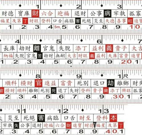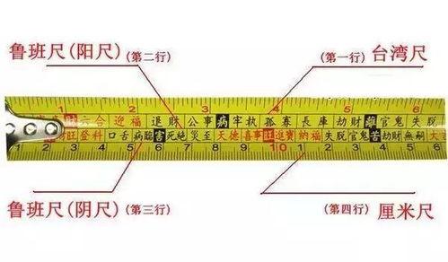 这些符号和数字代表了不同的含义,比如“财”、“病”、“祸”、“福”等。工匠们在使用鲁班尺时,会根据这些符号和数字来判断风水的好坏,以及家具的尺寸是否合适。