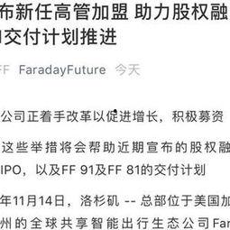 这位神秘高管的加盟,无疑为FF91注入了新的活力。在张伟的带领下,FF91有望在新能源汽车领域取得辉煌成就。让我们拭目以待,这位新任高管将为FF91带来哪些惊喜吧!