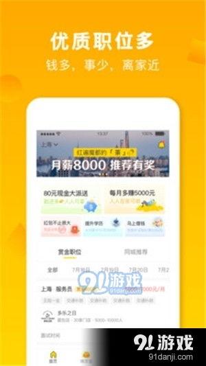 91招聘不仅职位丰富,还提供了许多贴心服务,让你求职无忧。